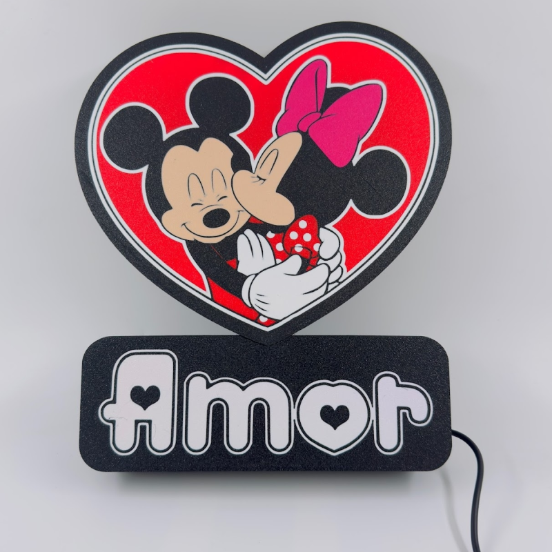 Luminaria 3d alusiva ao Mickey e Minnie com **** de largura, iluminada com led´s rgb, impressa em 3D com plástico PLA biodegradável. Todas as iluminarias são feitas por encomenda, sendo o prazo de entrega 10 dias após pagamento.